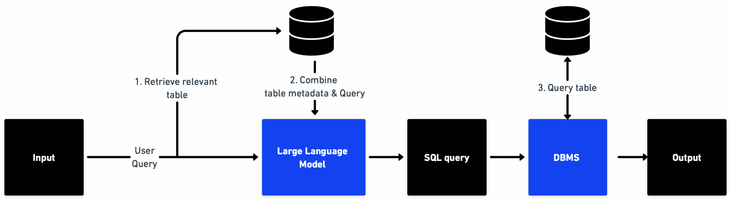 Figure 8: System overview of a question answering system over tabular data where the LLM returns a SQL-like query that can be executed to return the answer.
