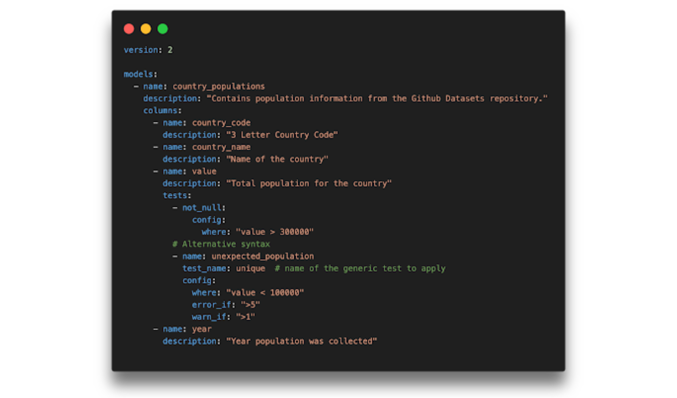 dbt test configuration example. Source: https://datacoves.com/post/dbt-test-options