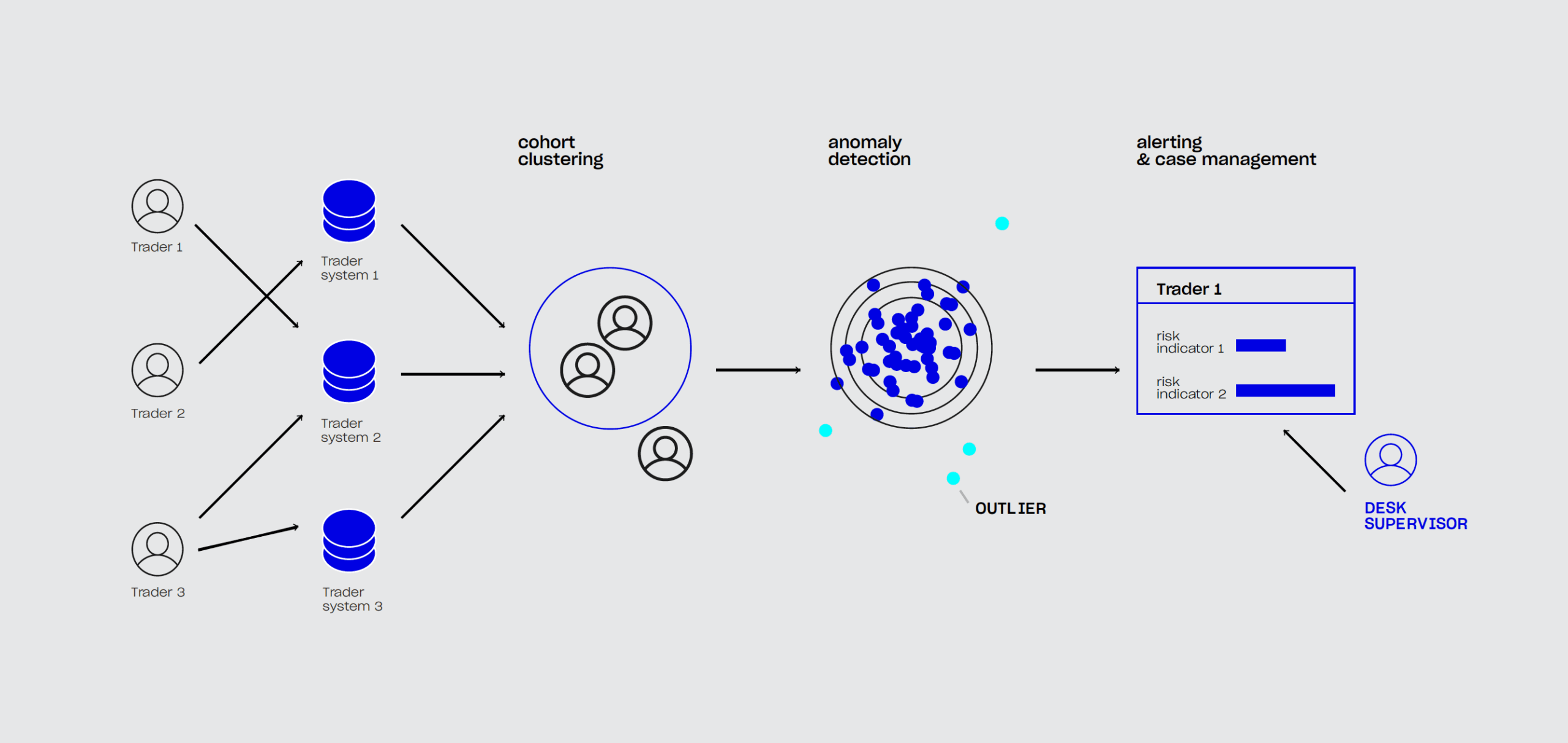 The problem with reducing risk in a systematic, measurable way is that the data generated by traders is massive and often difficult to integrate into a common system. Each trader generates thousands of individual data points across a number of complex portfolios each week, making it impossible for banks to manually track all trader behavior. While anti-fraud solutions for trader oversight have existed for some time, the advent of AI and machine learning technologies that rely on unsupervised learning methods, means that traders can no longer perpetrate fraudulent trades simply by avoiding the patterns of the past.