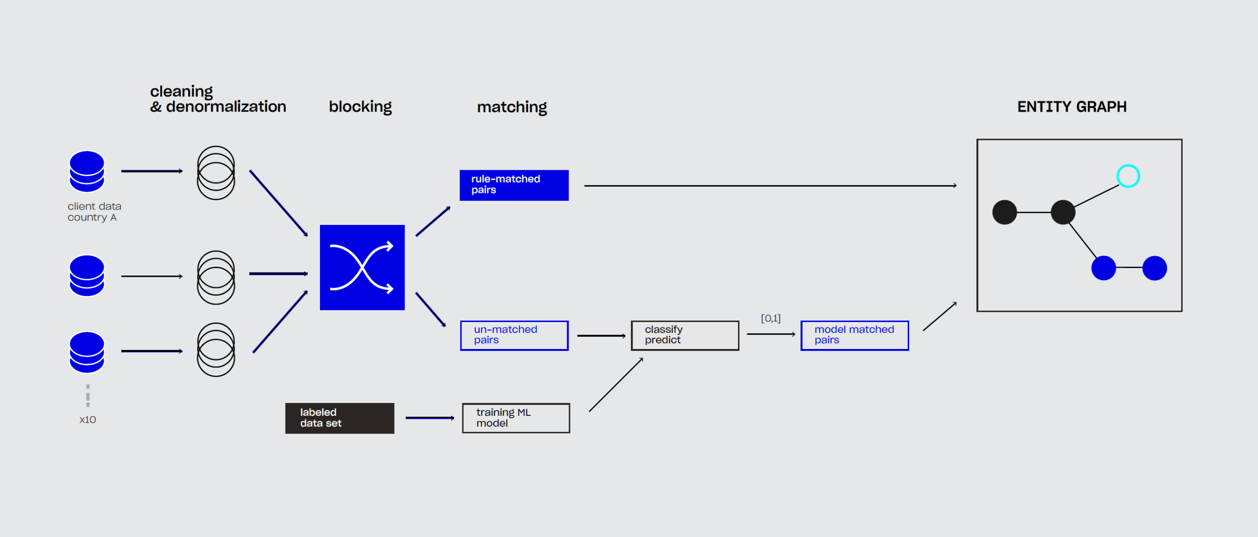Normally, cleaning and joining this information would have required considerable manual review of client data. After all, incorrectly merging or consolidating two entities is just as dangerous as failing to link them.